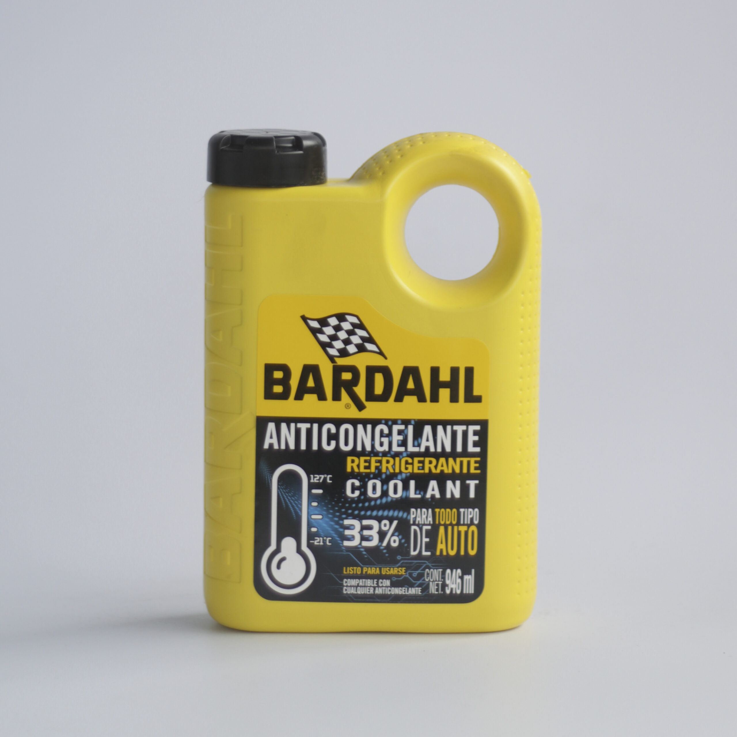 Bardahl Anticongelante Refrigerante Coolant 33 % listo para usar, protección de -21 °C. Presentaciones de 946 ml y 3.785 L. Factura electrónica con IVA y descuentos por volumen.
